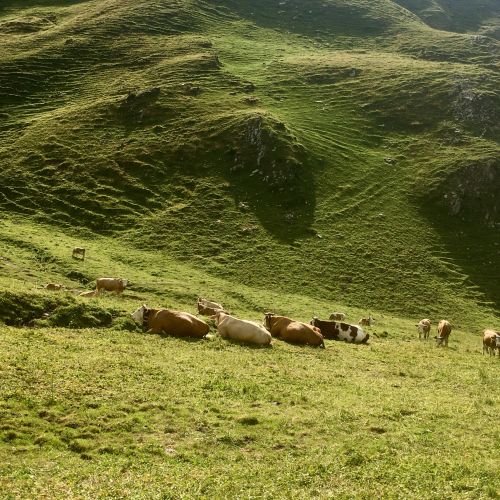 Morgens um 5.30 steigen wir die Berge hoch und holen die Kühe.