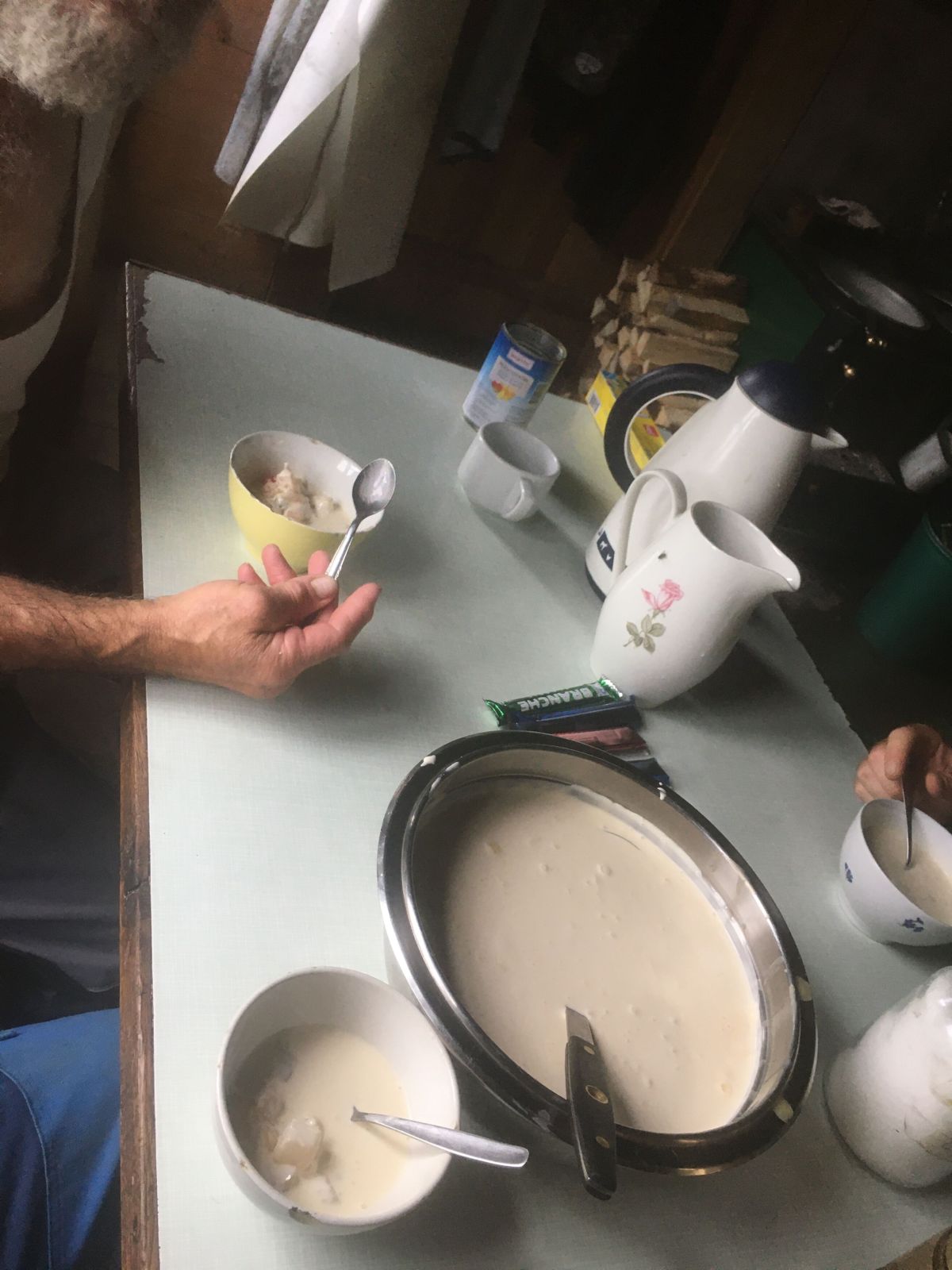In den Kaffe leerten wir anstatt Milch, Rahm und auf den Kuchen, den wir geschenkt bekamen, strichen wir grosszügig Nidle.