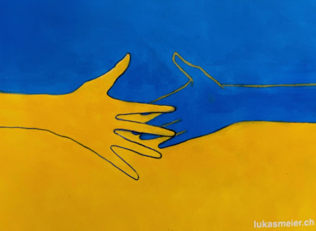 Postkarte von Lukas Meier, Künstler und Perkussionist, für die Glückskettensammlung zum aktuellen Geschehen. Krieg in der Ukraine.